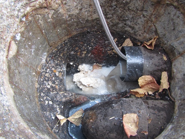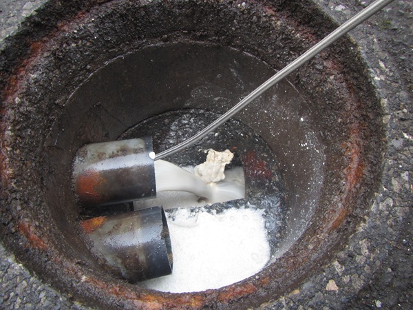 -汚水管内の尿石詰まりを除去
